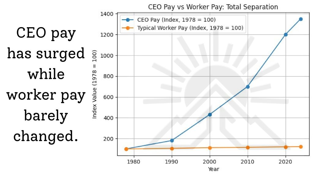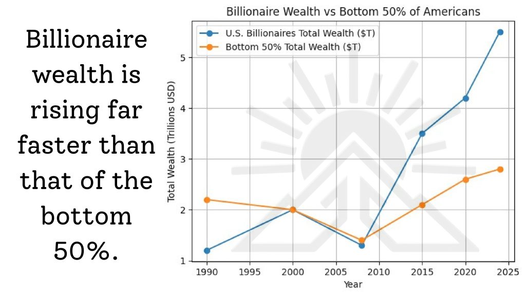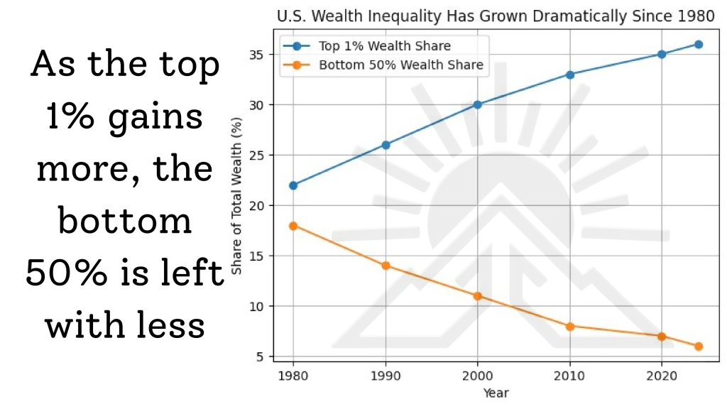 It challenges systems that concentrate wealth and decision-making in the hands of a few, while everyday people lose control over their